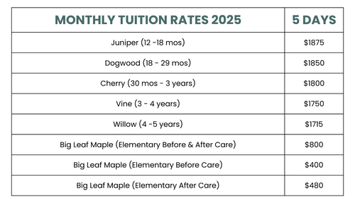 Welcome to the forest! It's our mission to provide care in a safe and nurturing environment that encourages whole-child development for children of all ethnicities and backgrounds within the framework of a Christian worldview.